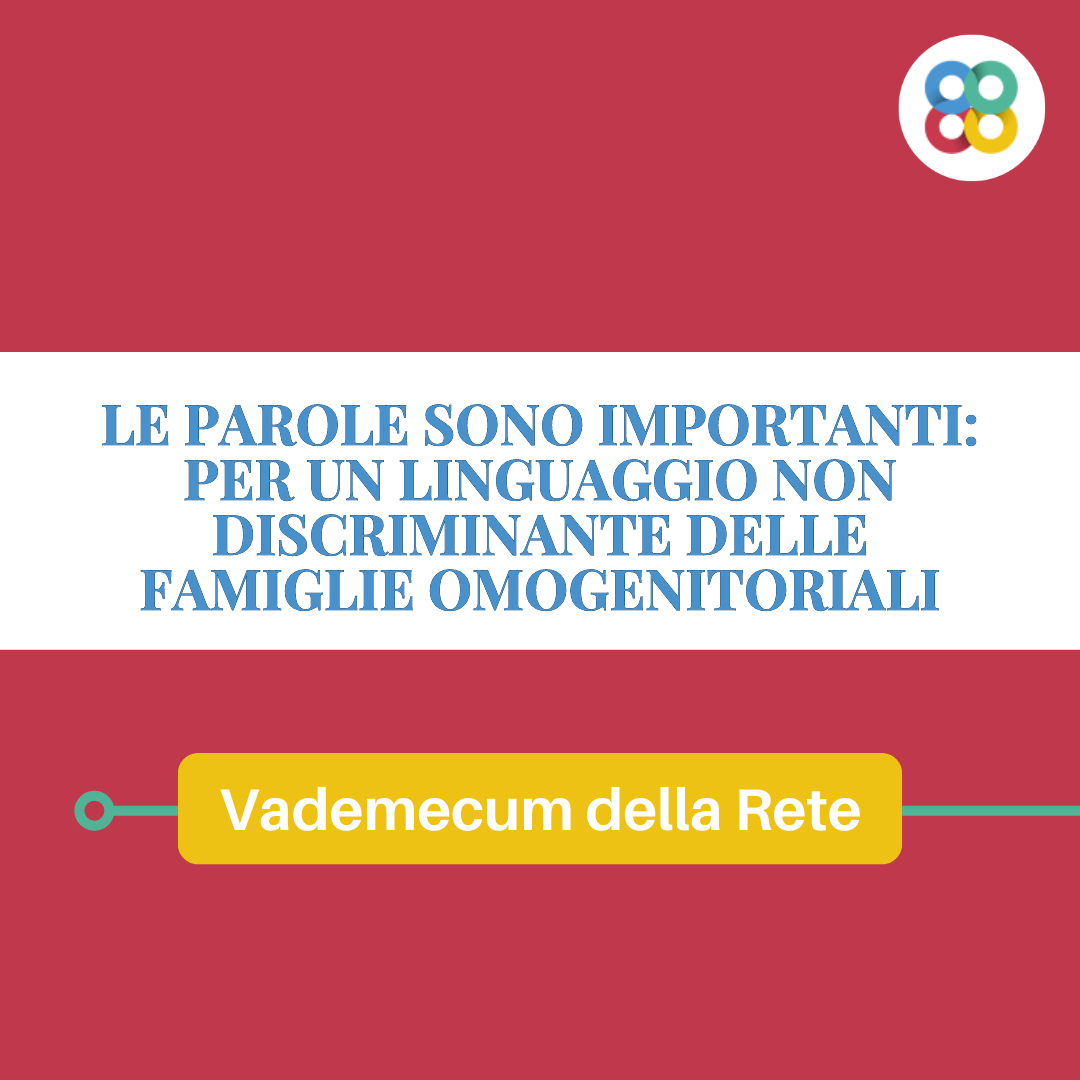 Consapevoli delle conseguenze nocive che pregiudizi e scorretta informazione possono produrre nel fomentare le discriminazioni e nell’invadere spazi di confronto democratico e, altresì, dell’intenso dibattito di cui ciascun termine è oggetto, vogliamo condividere alcune prime precisazioni sul linguaggio che sarebbe corretto utilizzare quando si parla di famiglie omogenitoriali. Nel rispetto della libertà di convinzioni e sensibilità individuali, scopo di questo Vademecum è apportare chiarezza sull’uso di alcune espressioni per evitare discriminazioni lesive dei principi di dignità e uguaglianza sanciti dalla Costituzione.