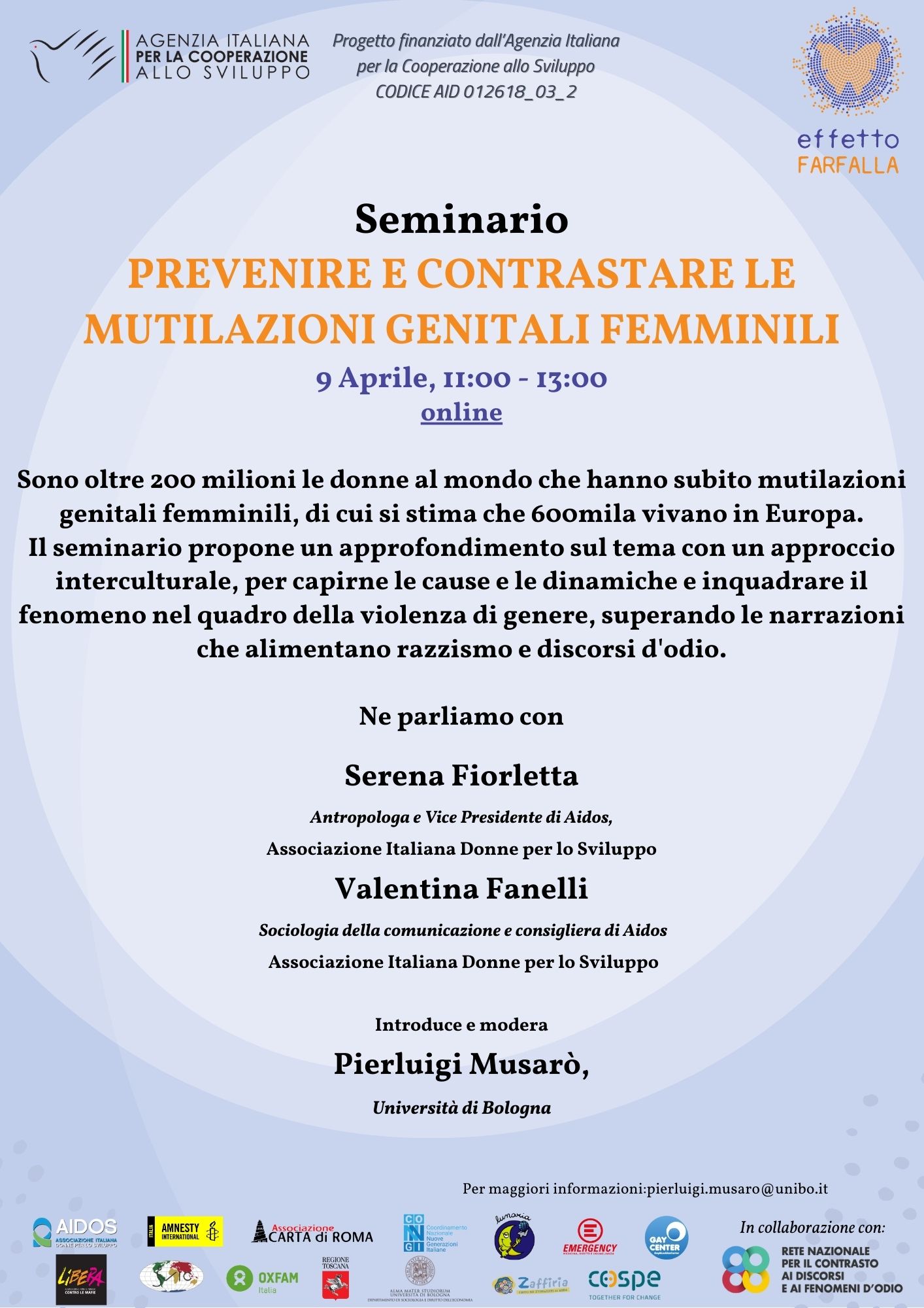 Il progetto Effetto Farfalla, cofinanziato dall’Agenzia Italiana per la Cooperazione allo Sviluppo, prevede il coinvolgimento di numerosi partner, tra cui anche soggetti di Rete: COSPE, AIDOS, Amnesty International, Emergency, Associazione Carta di Roma, Lunaria, Libera, Gay Center, Congi, OSVIC, OXFAM Italia, Regione Toscana, Zaffiria, Università di Bologna.