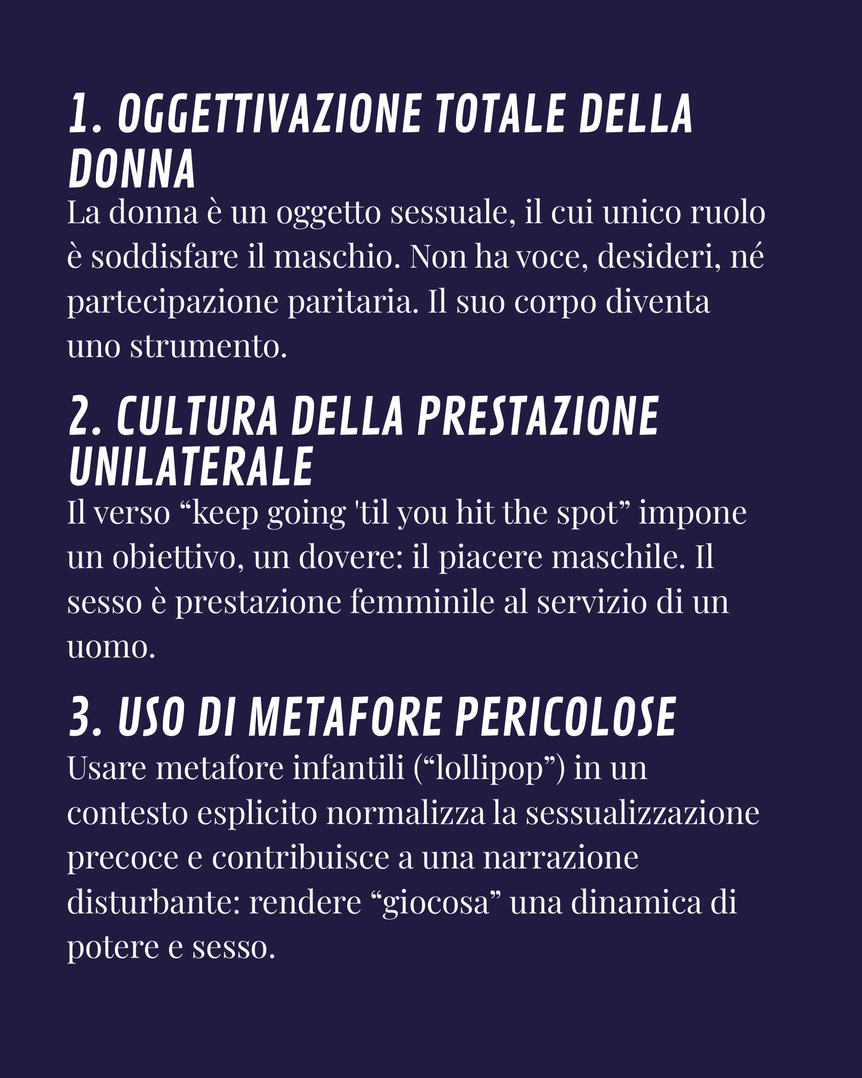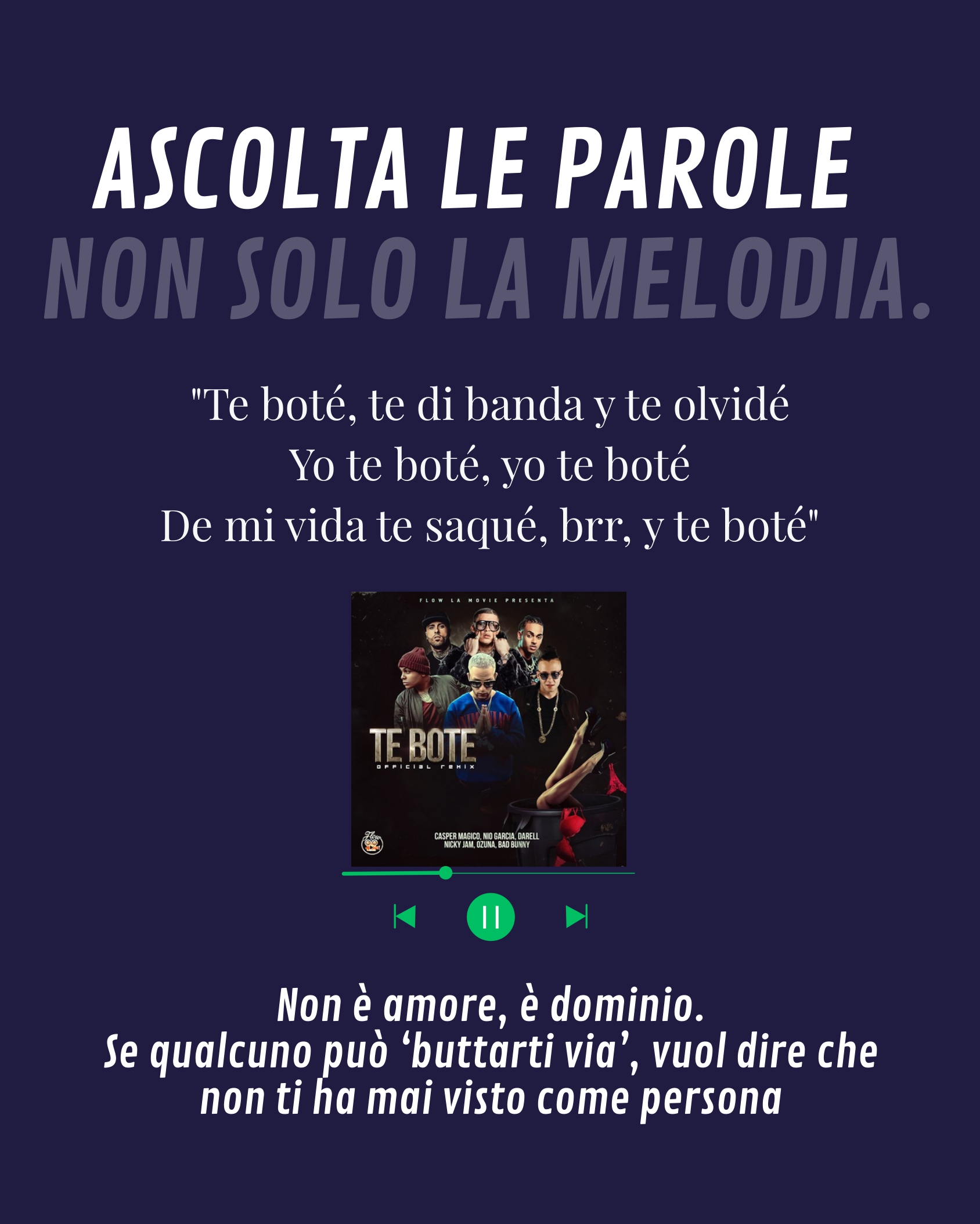 La campagna nasce con l’obiettivo di stimolare una presa di coscienza critica sul linguaggio sessista e violento presente nei testi musicali, mostrando come parole percepite come innocue, ironiche o provocatorie possano invece contribuire alla costruzione di immaginari discriminanti e alla normalizzazione della violenza simbolica.